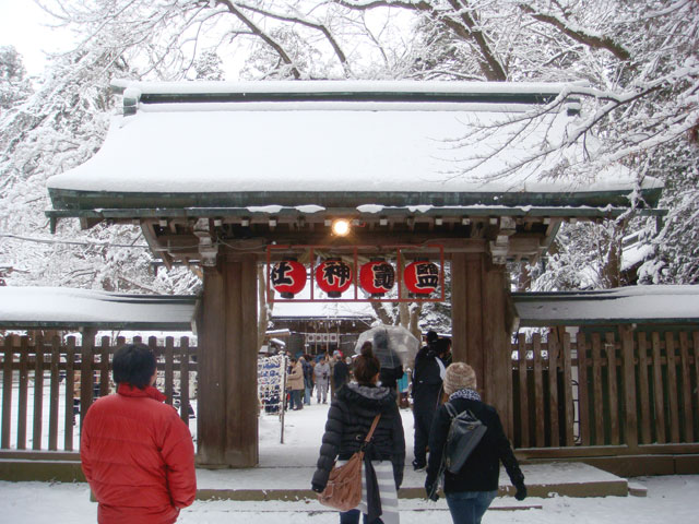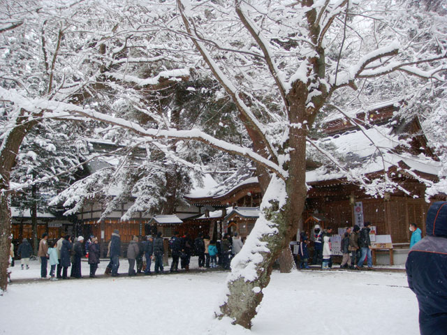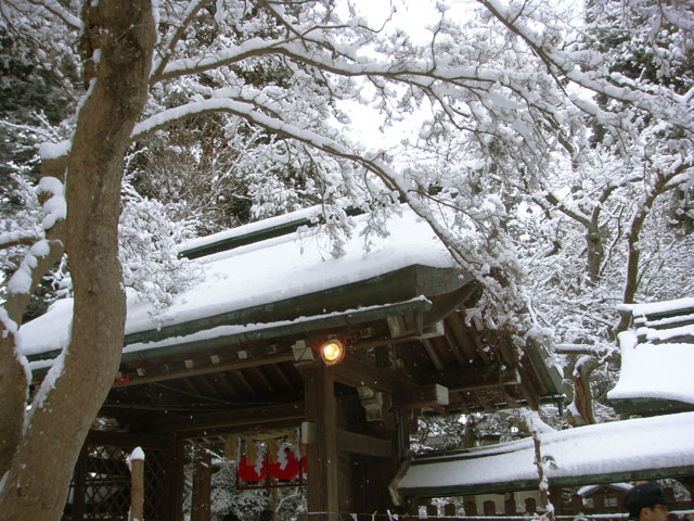 で雪景色の神社にみとれていたら